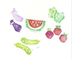 消しゴムを彫ってハンコを作り、ポストカードにスタンプします。