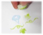 消しゴムを彫ってハンコを作り、ポストカードにスタンプします。