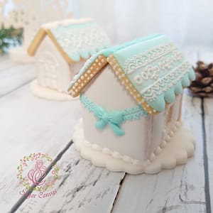 ティファニーカラーの屋根にアイレットレースを施したお家を作ります。